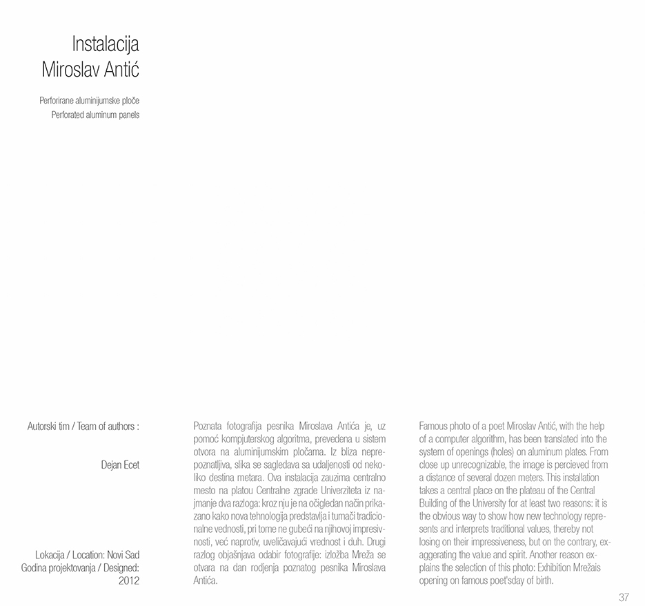 PROJEKTI Miroslav Antić 26/01/201326/01/2020 by 505 Location / Lokacija: Novi Sad Designed / Projektovano: 2012. Year of construction / Realizacija: 2013. Team of authors / Autorski tim: Dejan Ecet Post navigation Experiment 505-1Experiment 505-2