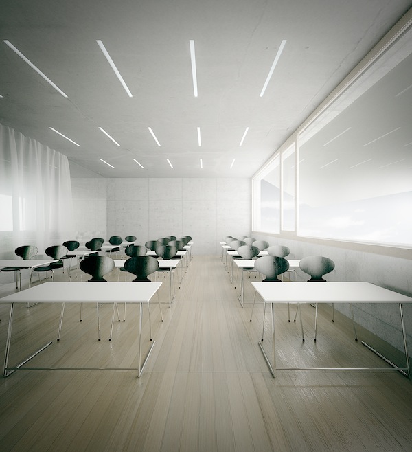 Projekat nove školske zgrade za potrebe Poljoprivredne škole sa domom učenika u Futogu uslovljen je urbanističkim projektom kojim su striktno definisani gabariti i pozicija objekta. Konstruktivni sistem objekta sastoji se iz armirano betonskih nosećih zidova i ploča čime su omogućeni neprekinuti rasponi na fasadi, ali i između hodnika i učionica. Enterijer predstavlja iskorak iz uobičajene prakse projektovanja školskih prostora. Distinktivni karakter unutrašnjih prostora proizilazi iz novih prostornih odnosa koji nastaju u enterijeru, ali i iz redukovane upotrebe arhitektonskih materijala, lišene svakog oblika dekoracije. Prioritet je bilo formiranje prijatnih prostora za rad i boravak učenika. Staklene pregrade uvode se iz bezbednosnih, funkcionalnih i estetskih razloga. Ukinuta je uobičajena podela na primarne i sekundarne prostore. Arhitektonski karakter svih prostora je ujednačen, tako da se dobija ambijent koji je prijatan za odvijanje nastave, vannastavne aktivnosti (internet centar, radionice…) ali i boravak dece. Centralno mesto zauzima hol koji ima karakter pjacete.